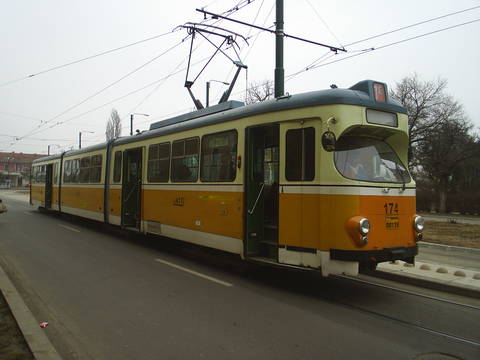 Ati cautat: Tramvaie GT8 circuland pe linia 1 in Timisoara.